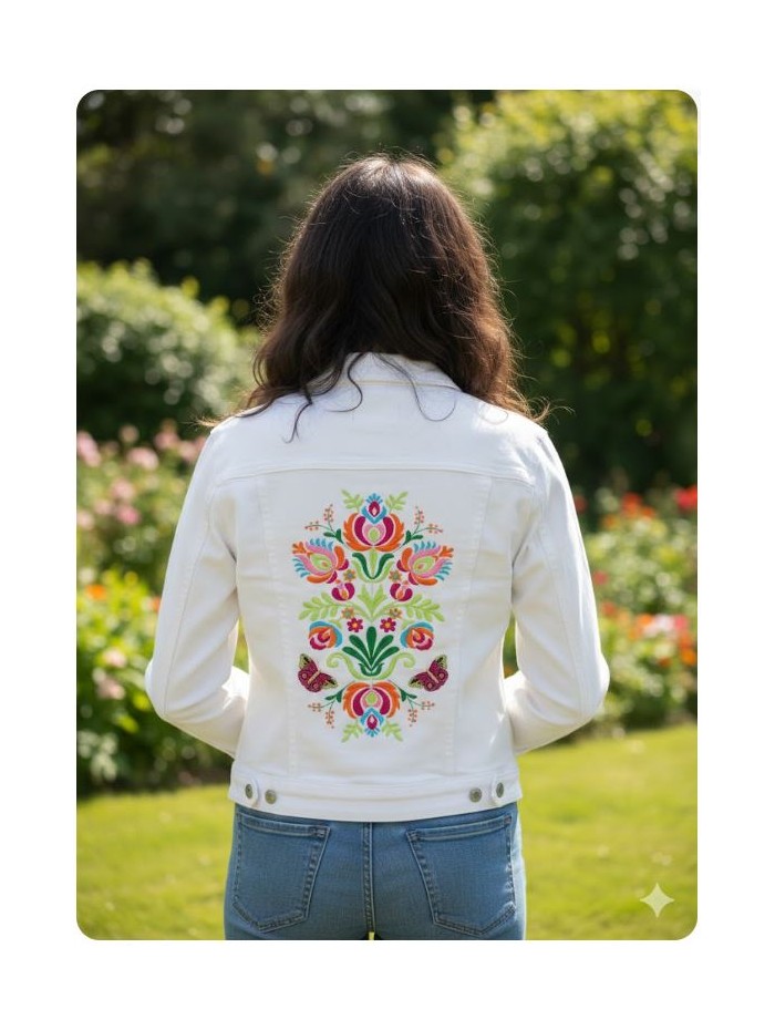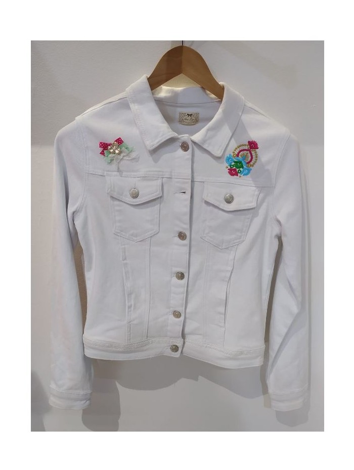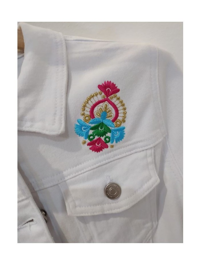 Chaqueta blanca de algodón- elastano para mujer con bordado en la espalda