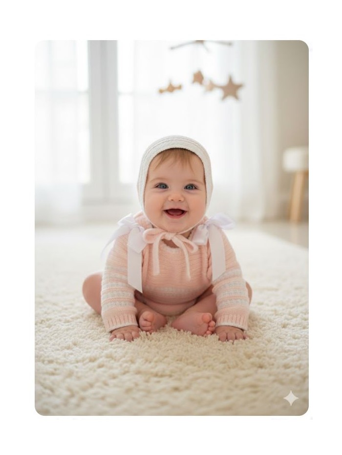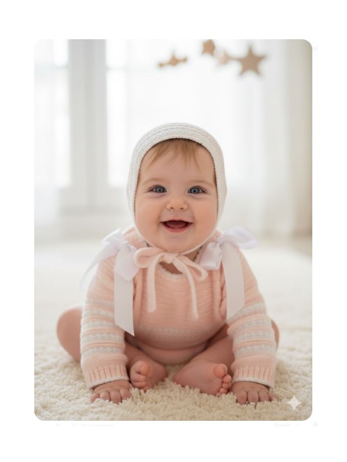 Conjunto de punto para bebe compuesto por capota jubon y braga.
