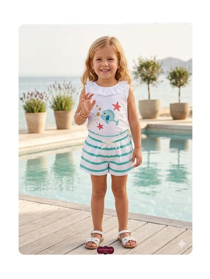 Conjunto camiseta pez short rayas Mon petit bonbon