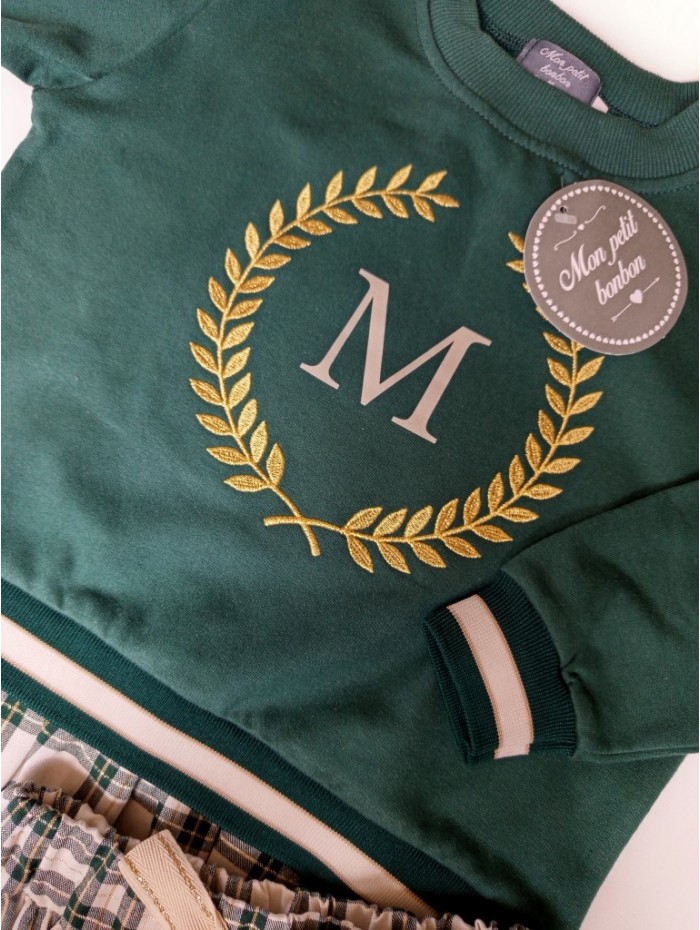 Conjunto falda pantalón y sudadera bordada Mon petit bonbon