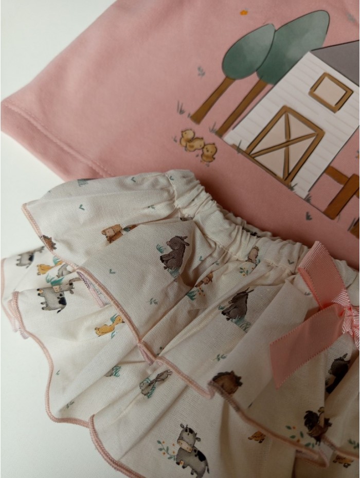 Conjunto compuesto por sudadera y braga con volantes de la firma Pio pio