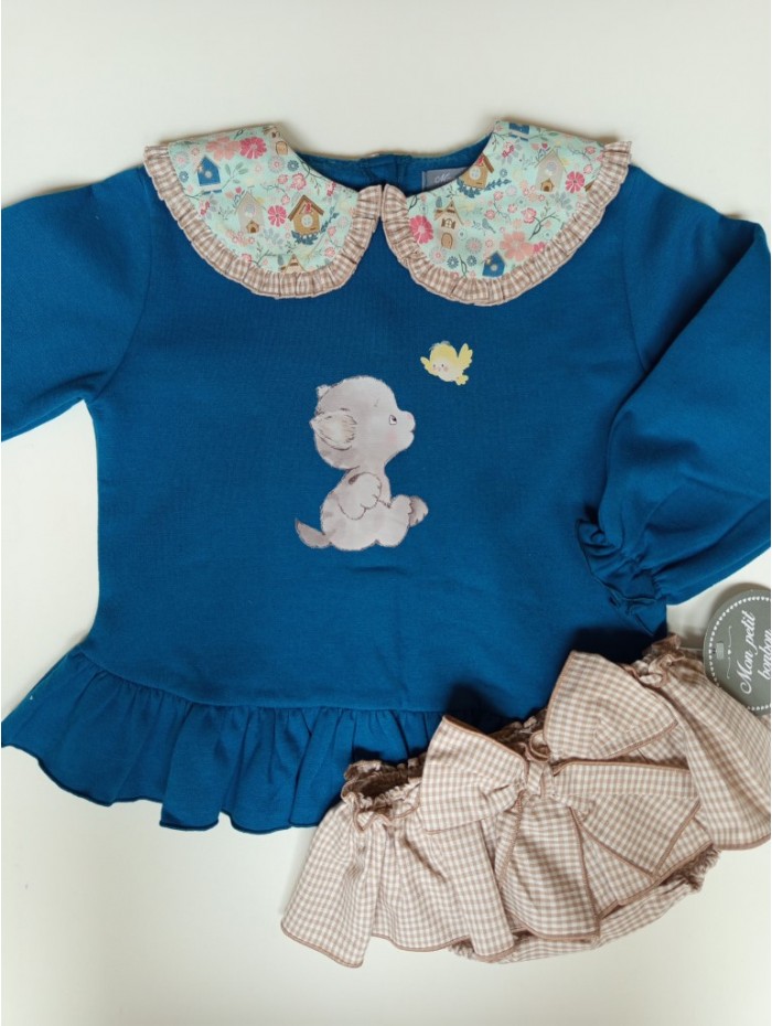 Conjunto compuesto por sudadera y braga con volante de la firma Mon petit bonbon