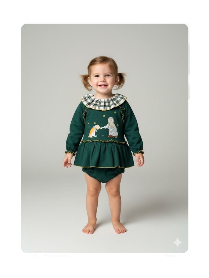 Jesusito confeccionado con tejido de felpa en tono verde de la firma Mon petit bonbon