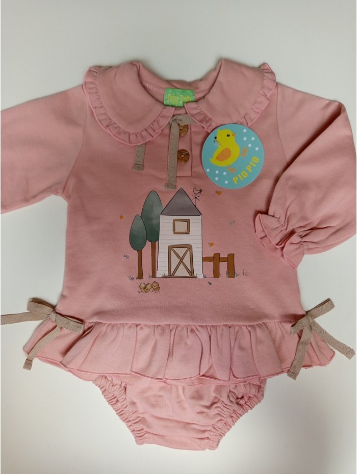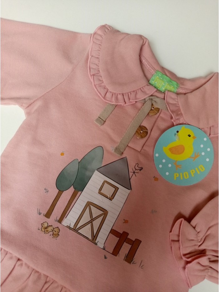 Jesusito de felpa rosa con estampado de casita y árboles de la firma Pio pio