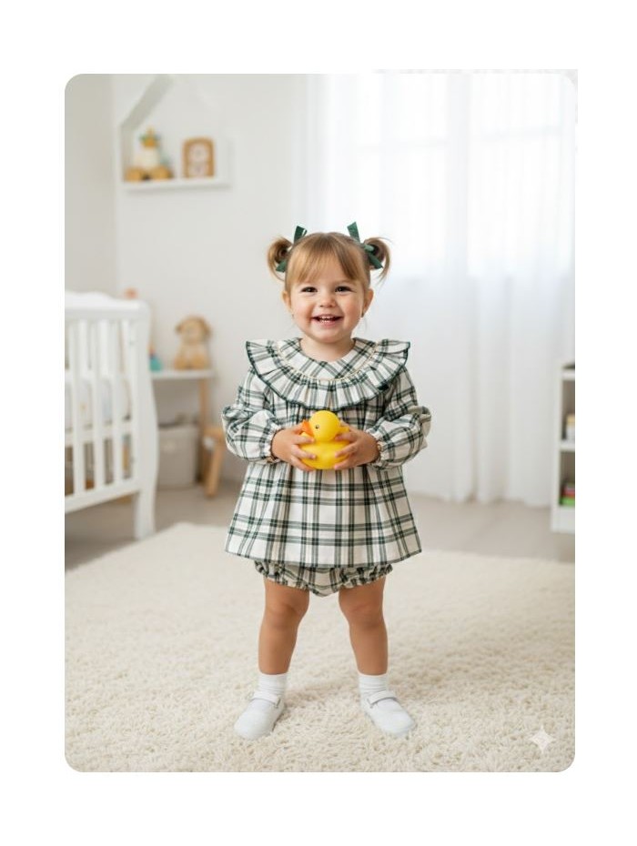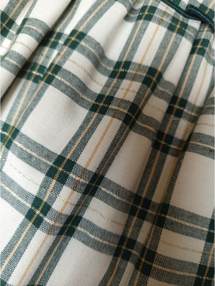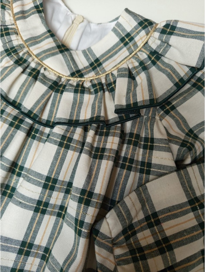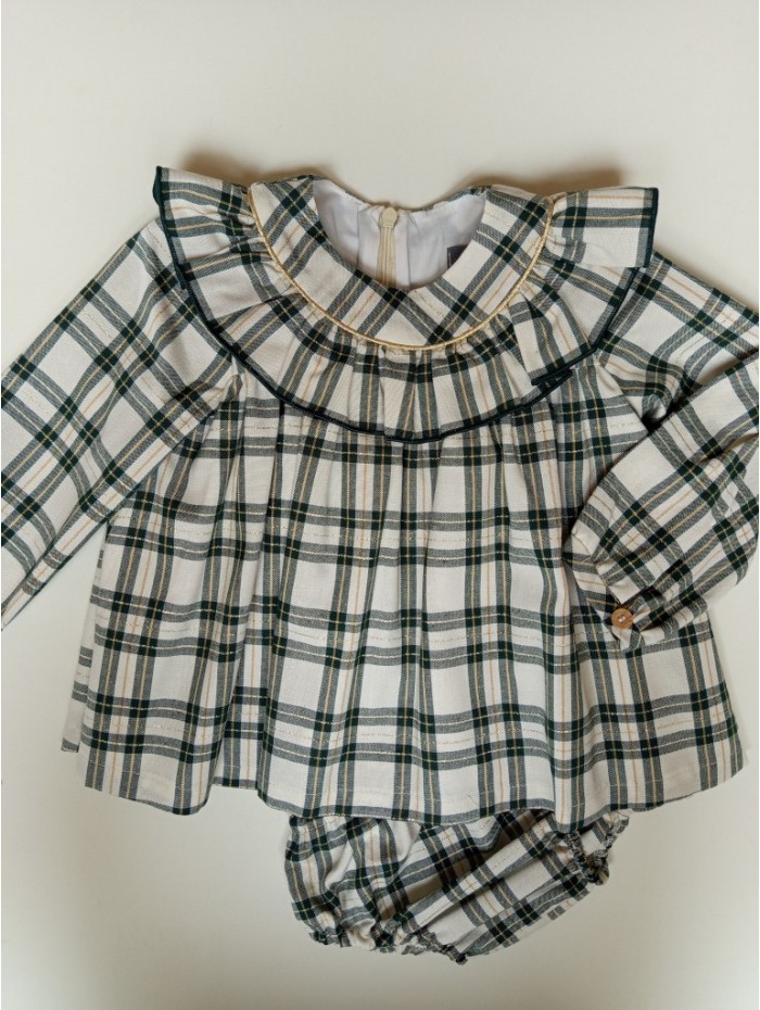 Jesusito, vestido con braga a juego de cuadros verdes filo dorado Mon petit bonbon