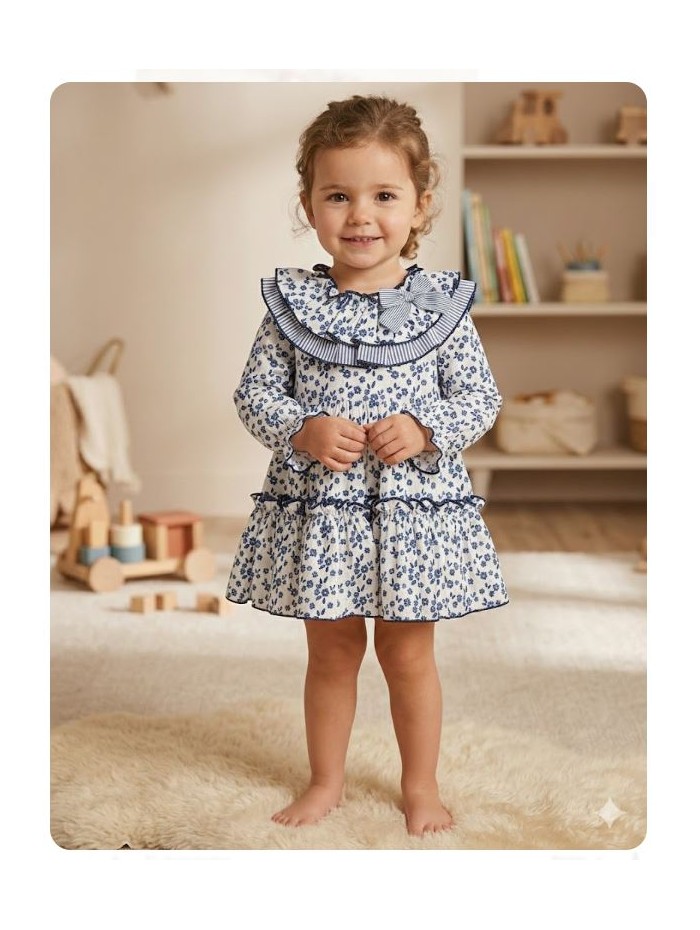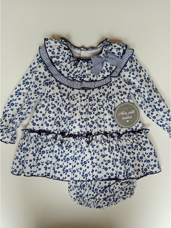 Jesusito, vestido para niña con braga a juego. Prenda con forro y cierre en la espalda