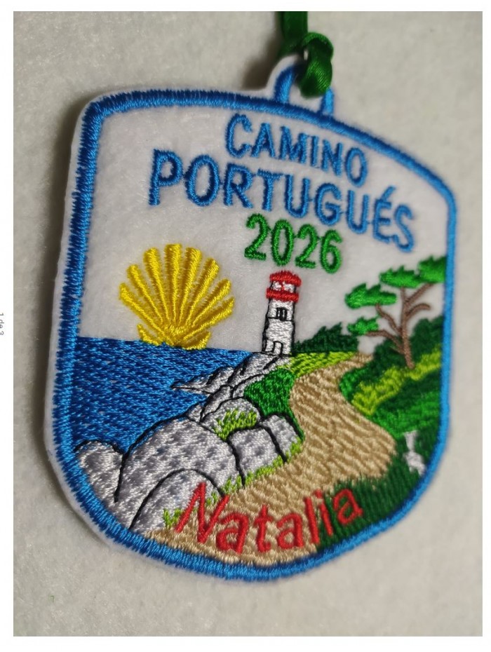Parche bordado sobre fieltro blanco para coser o colgar con cinta. Personalizado con tu nombre y año