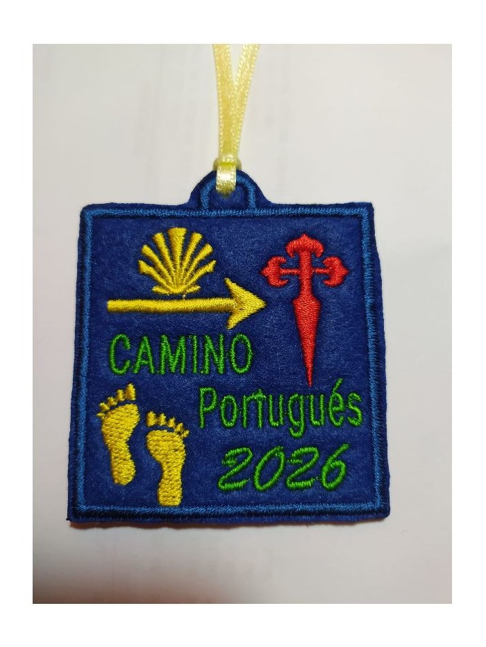 Parche bordado sobre fieltro azul para coser o colgar. Emblema del camino bordado puedes personalizar camino año