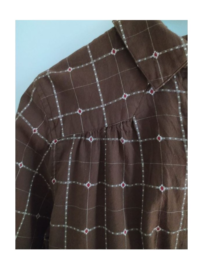 Camisa para mujer , tejido marrón y corte canesu en espalda y delantero. Ligeramente mas larga en la espalda