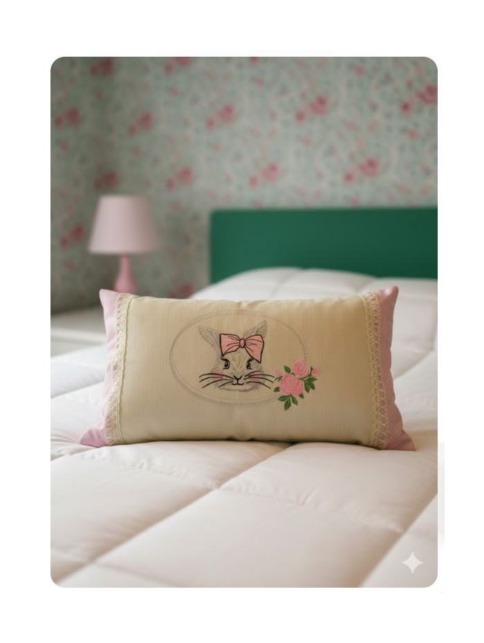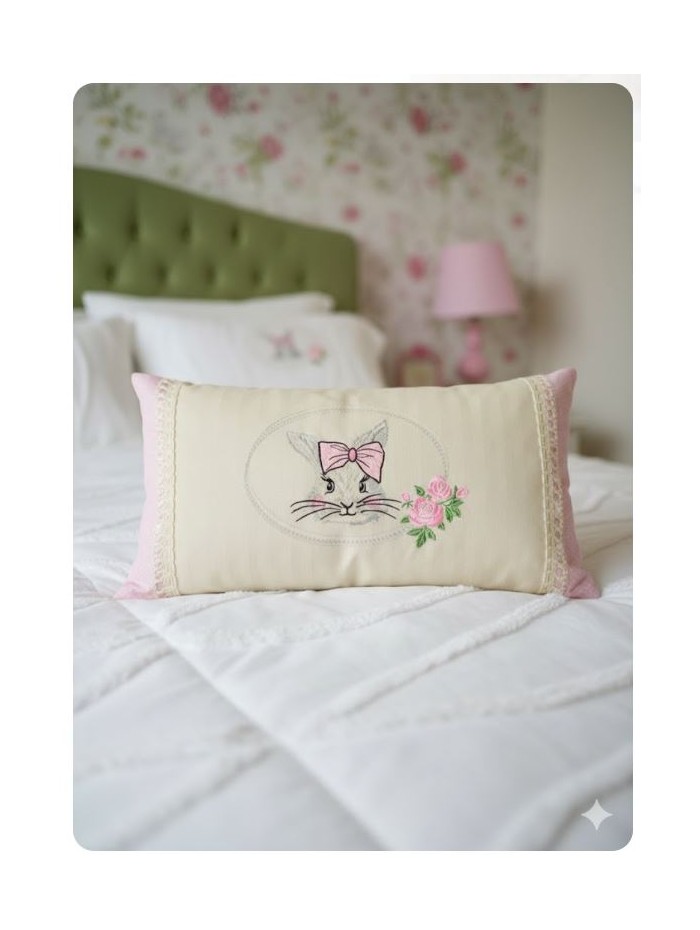 Funda de cojin bordado conejita topos rosa