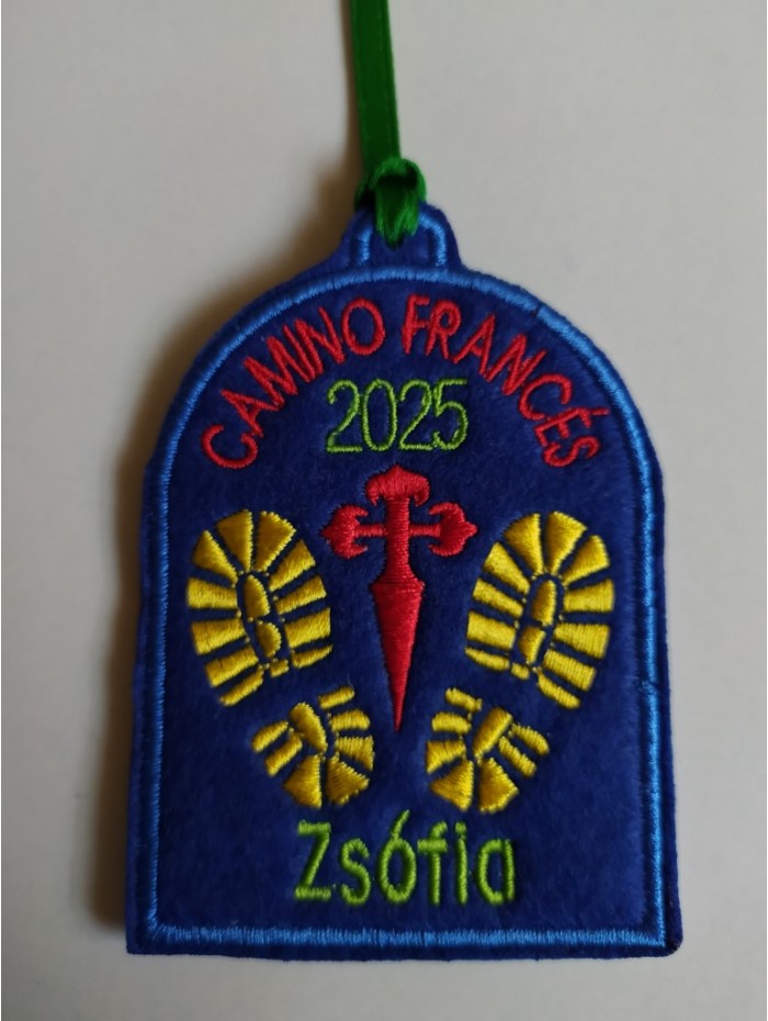 Para coser o colgar con cinta. Personalizado con tu nombre, año y nombre del camino