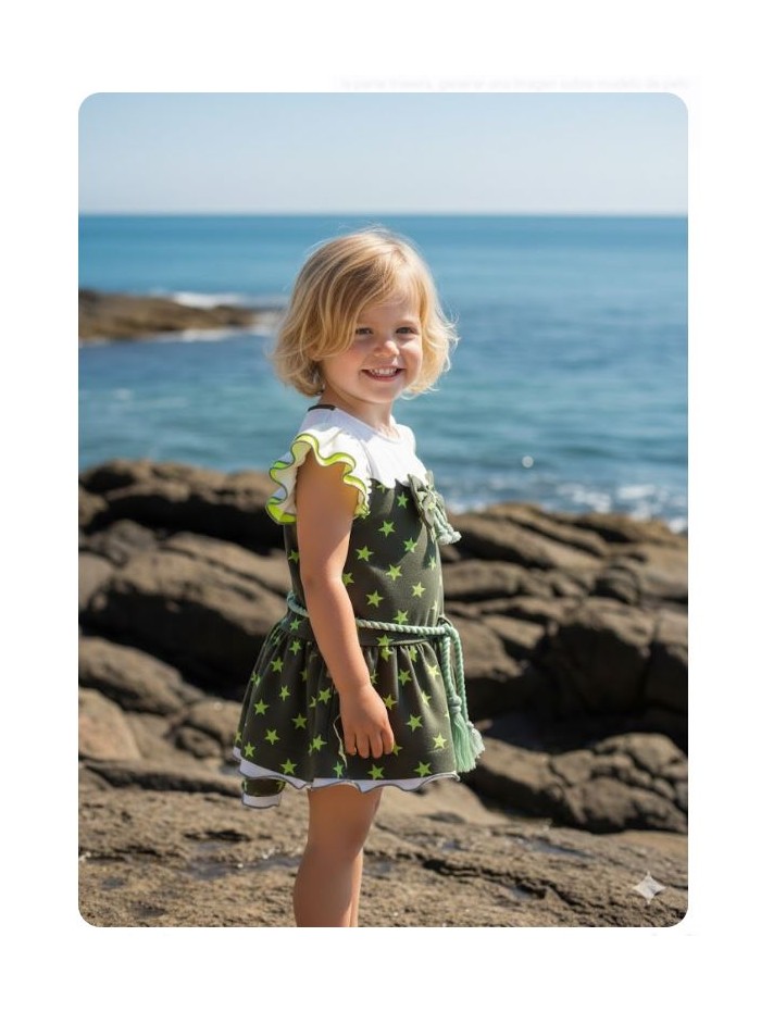 Vestido de verano para niña verde estrellas modelo paraiso de Kauli