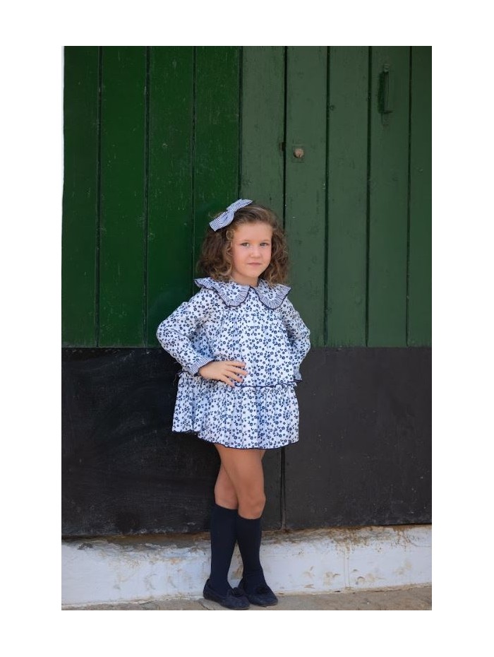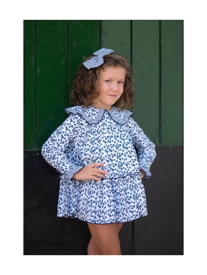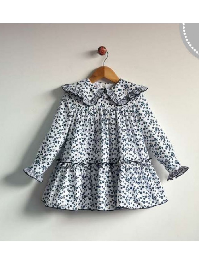 Vestido de tejido estampado con pequeñas flores y combinado con rayas de la firma Mon petit bonbon