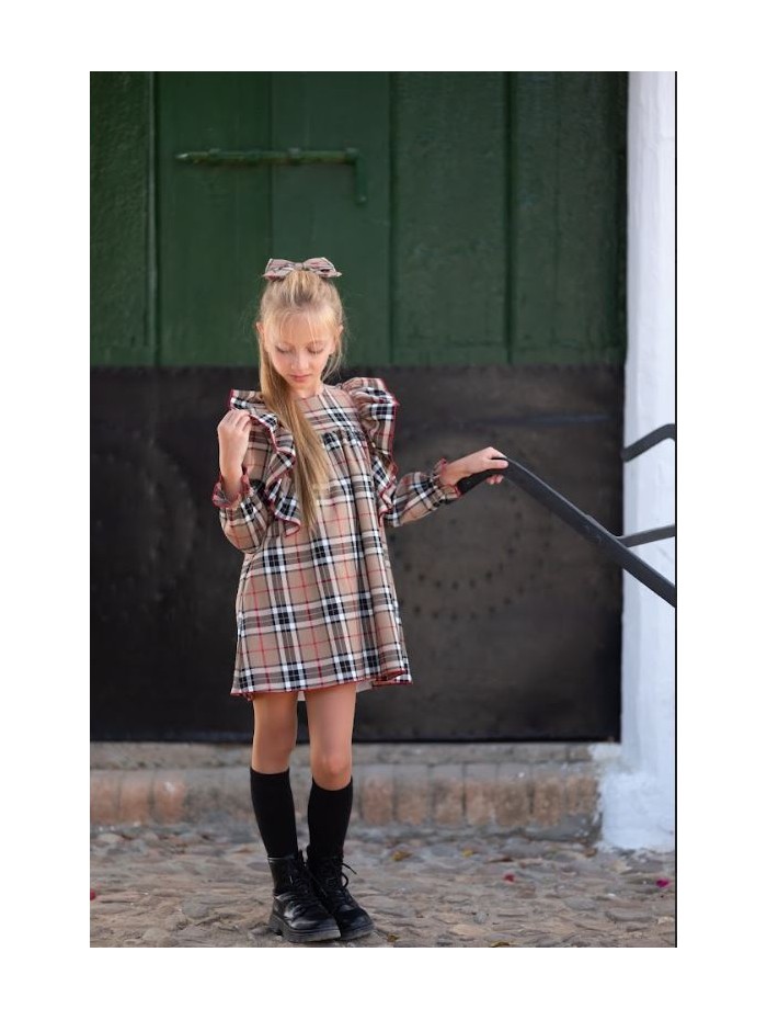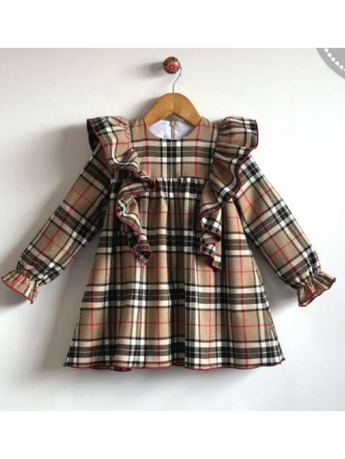 Vestido de invierno para niña confeccionado con tejido estampado cuadros Burberry de la firma Mon petit bonbon colección invierno