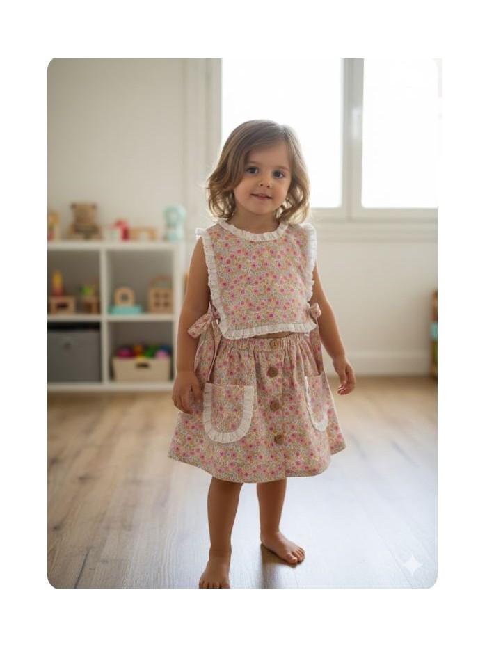 Conjunto para niña compuesto por top y falda de vuelo de la firma Mon petit bonbon