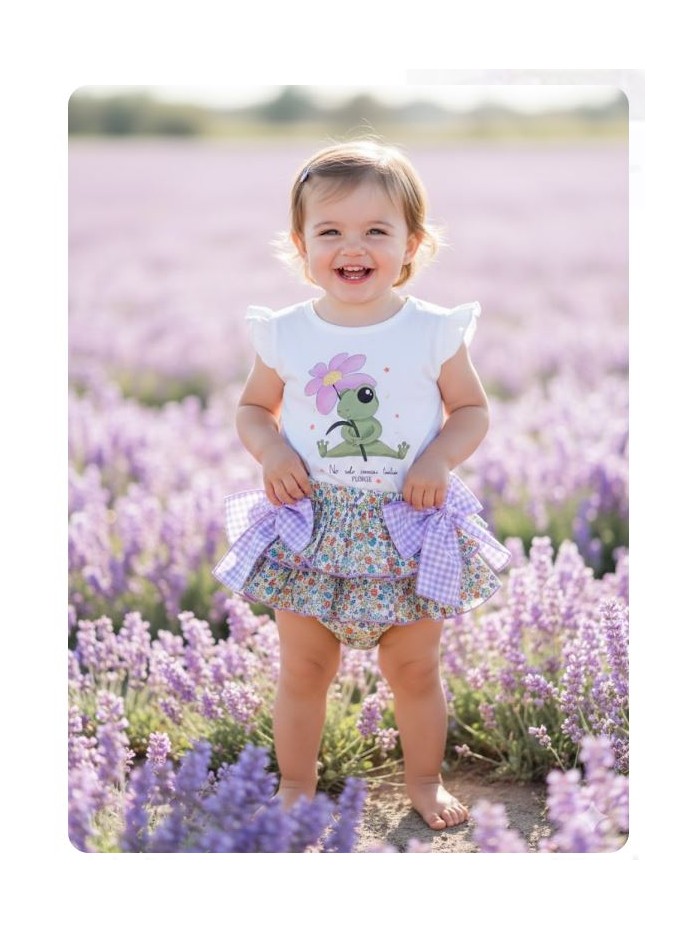 Conjunto de camiseta y braga con volantes . Fabricado en España por la firma Pio pio.