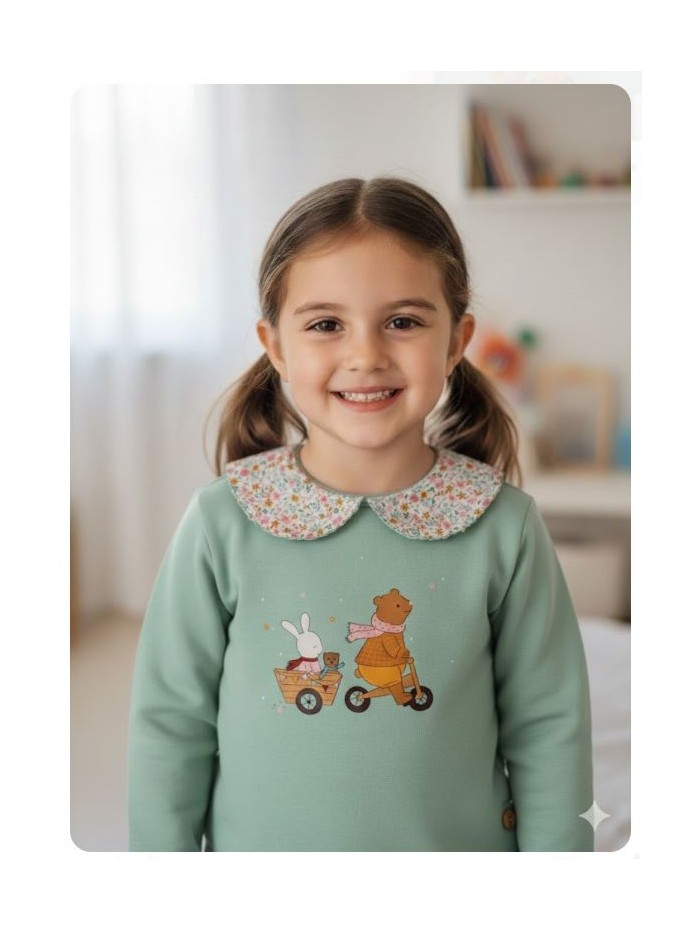 Sudadera verde agua oso bicicleta de Pio pio